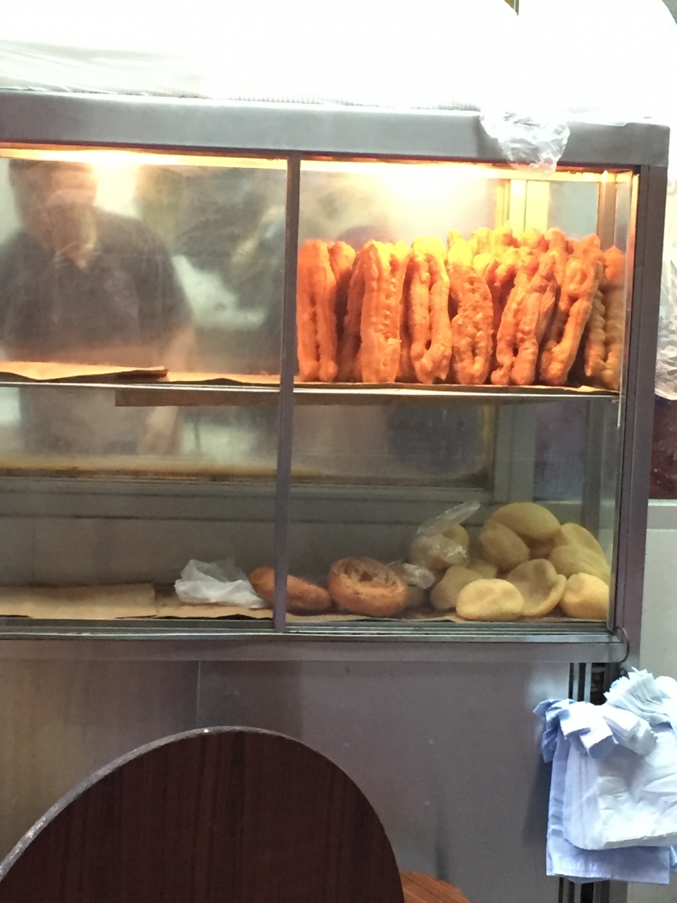 こどもたちが台灣おにぎりにはまってるので、油條をかおうとお粥さんへ。ヒールサイドエスカレーターちかくにある忠記。老舗っぽく、油條も手頃で8どる、香港の油條はこんがりとふとい感じですが、台灣のほうがほそながく、サクサクなかんじです。