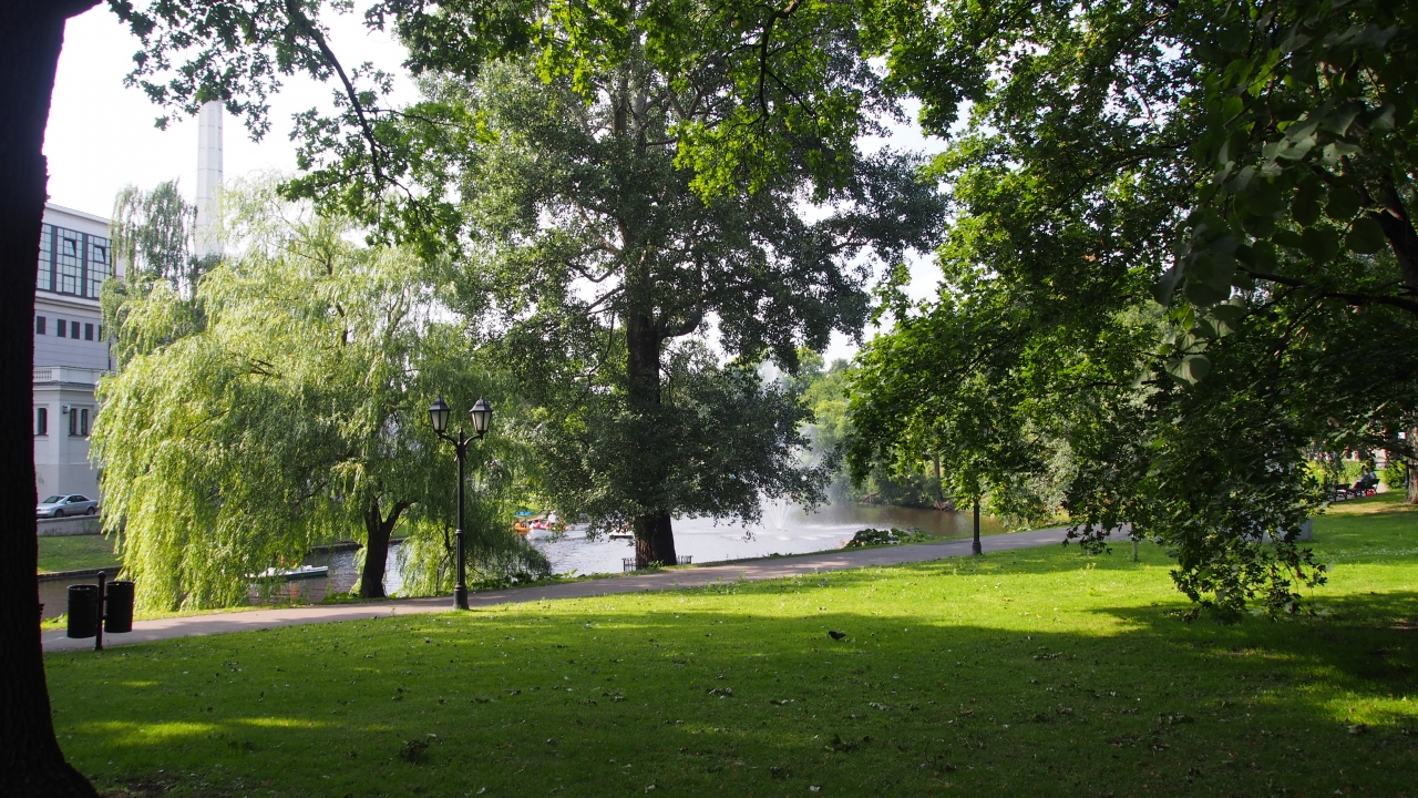 緑の芝生や木々と運河が美しく、観光ボートや、自分でこぐタイプのボート