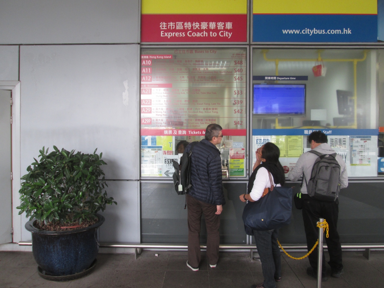 香港国際空港からA21の空港バスを利用して、彌敦道の尖沙咀駅まで利用しました。バスには現金でも乗車できますがお釣りのやりとりが面倒なので、バス停付近の券売所でチケットを購入するとスムーズに乗車できます。料金は33ドルでした。