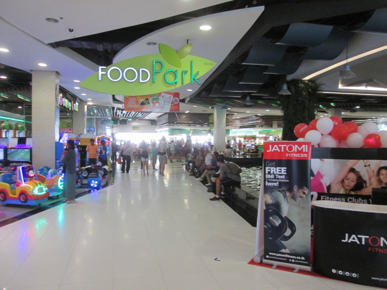 BIGCのフードコートは単に食事をする場所ではありません。エントランスに「FOOD Park」の文字があるように、ゲームセンターやカラオケが併設されており、ゲームは家族、カラオケは学生をターゲットに集客しています。