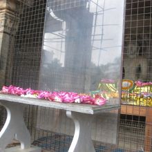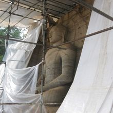 遺跡を守るためか、簡素なビニールシートのような屋根で覆われている。