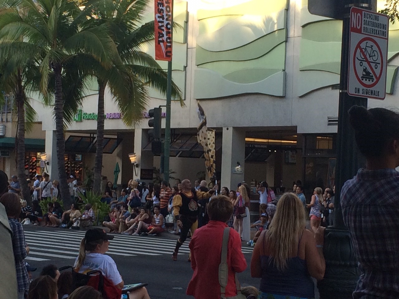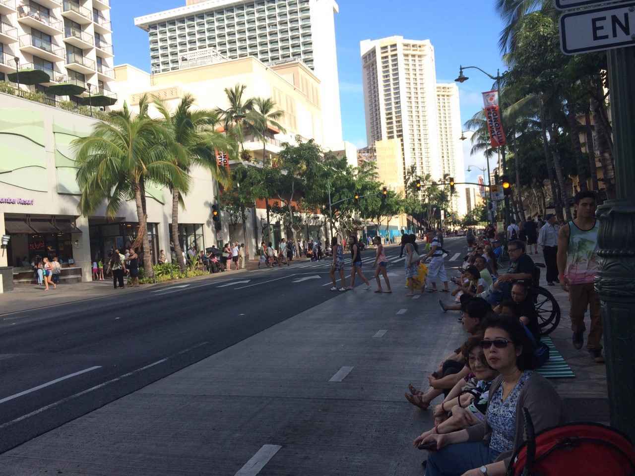 ワイキキビーチに沿って 一方通行 交通量多し 賑やかな通り