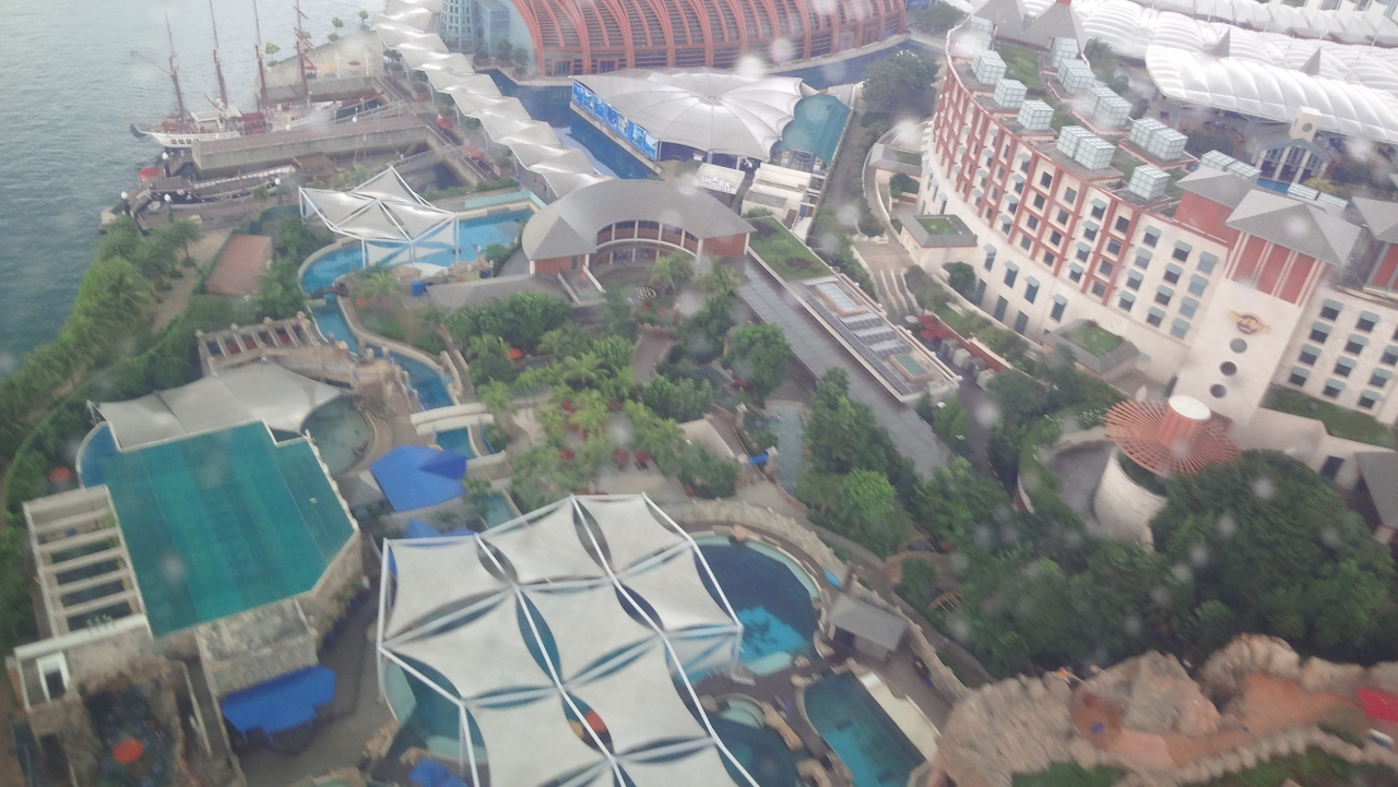 セントーサ島へ行くために、往復利用しました。ハーバー・フロント・ステーションから乗車し、マウント・フェーバー・ステーションで折り返してセントーサ島へ渡ります。セントーサ島へは徒歩やモノレールで渡った方がはるかに安上がりなのですが、上空からの景色を楽しむのであればやはりケーブルカーです。ただ、ハーバー・フロントを出発するころから雨が降り出し、見通しがイマイチで残念。それでも港やセントーサ島の眺めを楽しむことはできました。