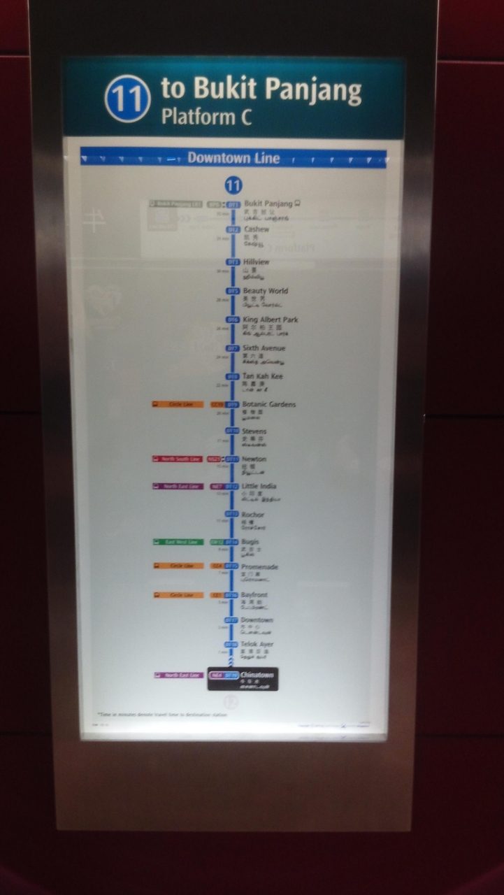 文字通りチャイナタウンの最寄駅、A出口から地上に出るとパゴダ・ストリート、中国系のショップが両側に並んでいました。東北線とダウンタウン線が乗り入れており、行きはリトルインディアから東北線を利用、帰りはベイフロントまでダウンタウン線を利用しました。現在ダウンタウン線はチャイナタウンが終点ですが、来年には東西線空港支線のエクスポ駅まで延長されるそうです。