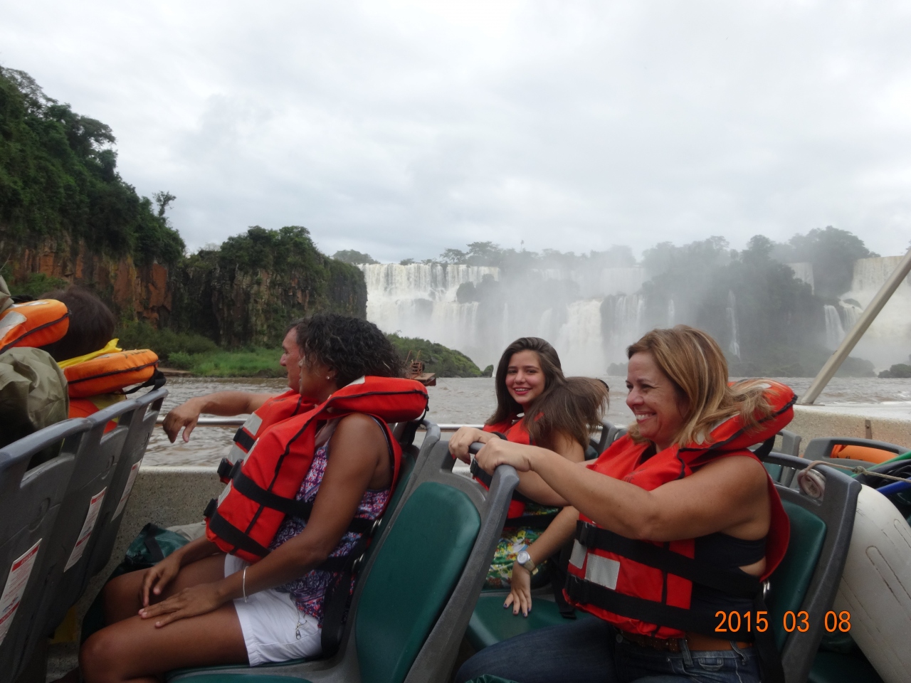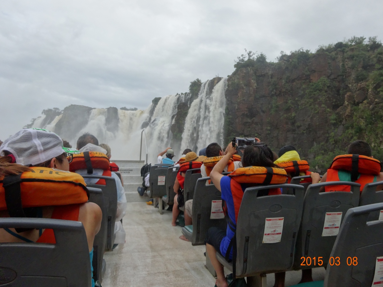 アルゼンチン側のイグアスの滝のボートクルーズを体験した。アルゼンチン側の下の遊歩道を滝の下の方に歩くとボート乗り場がある。乗船の前に防水をしっかりして救命胴着をつけ、20人ぐらいエンジン付きボートに乗り組み上流の滝つぼ近くまで行く。防水着を付けていてもずぶぬれになる。迫力満点である。ブラジル側にもある。