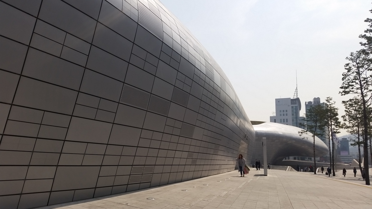 ザハハディド氏が建築した有名な建物です。国立競技場のドーム案にも採用されてましたが、こちらの東大門デザインプラザも同じく曲線を描いたモダンなドームとなってます。