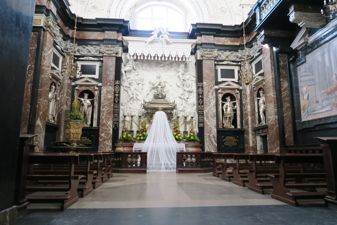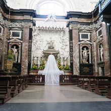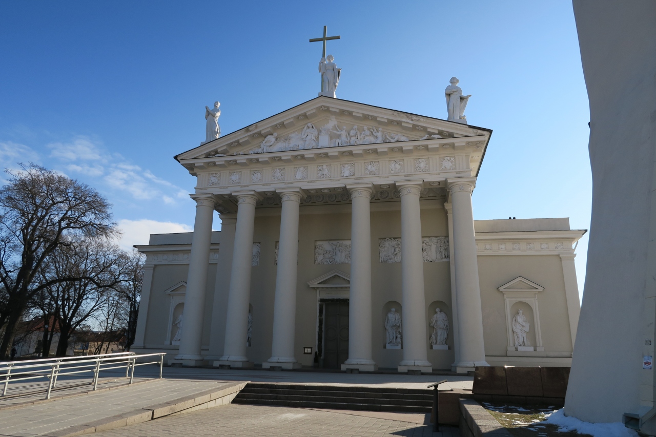 屋根にリトアニアの守護聖人「聖スタニスラウス」、「聖ヘレン」、「聖カジミエル」の3聖人の像があります。