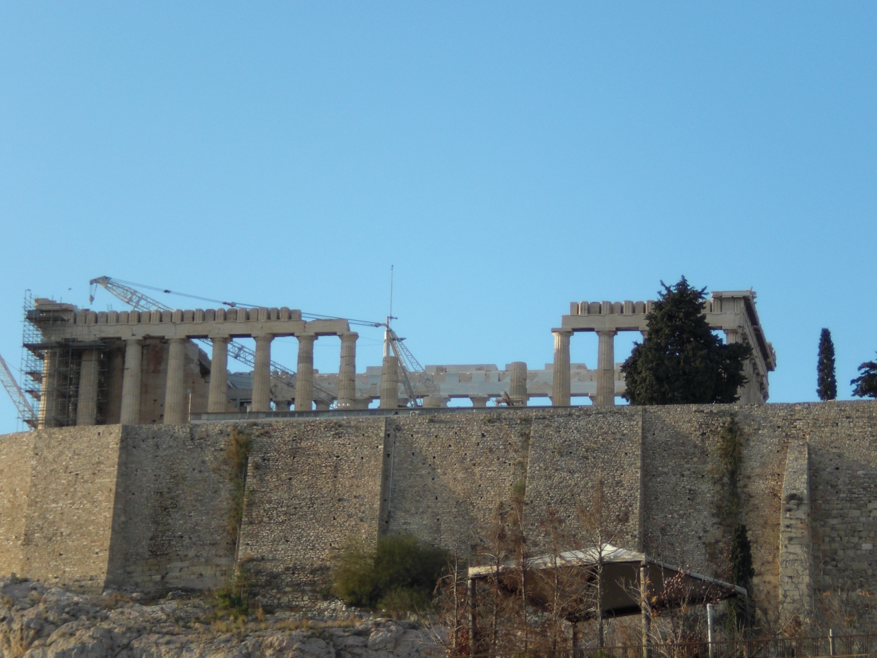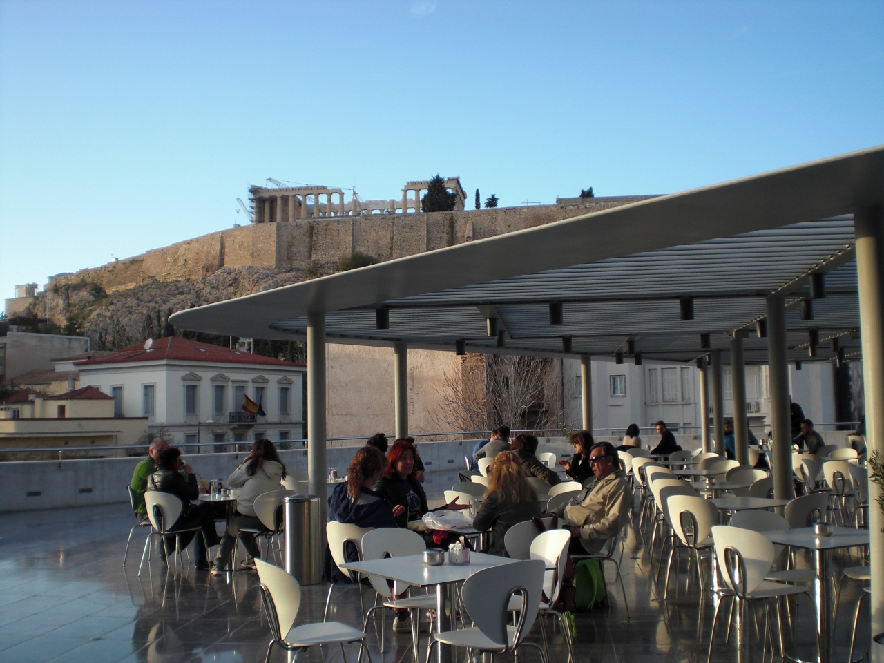 アクロポリス駅から歩いてすぐの新しい博物館です。1階床は透明になっており、下に発掘現場が見える様になっています。2階は大理石の彫像が沢山(彩色を復元した物もありました)4階はパルテノン神殿と同数の柱(ステンレス製ですが)があり、柱間にはギリシャ神話のレリーフが埋め込まれ、三角形部分の彫刻も並んでいます。ただ本物は大英博物館ですよね。(戻ってくる事があれば、埋め込まれるのでしょうか?)3階にパルテノン神殿が見えるレストランがあり、金曜は24時までです。館内は写真撮影不可。