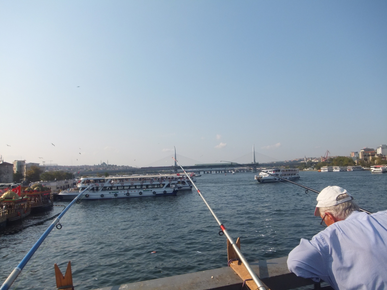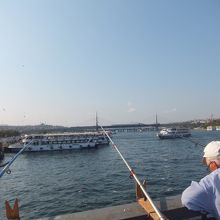 旧市街と新市街を結ぶ橋です。旧市街側からガラタ塔へ徒歩で向かう際に利用しました。橋は二重構造で、下階には飲食店があり、上階は車道と歩道になっています。歩道では大勢の地元民が釣りをしています。旧市街側の橋のたもとには有名なサバサンドの屋台があり賑わっていました。
