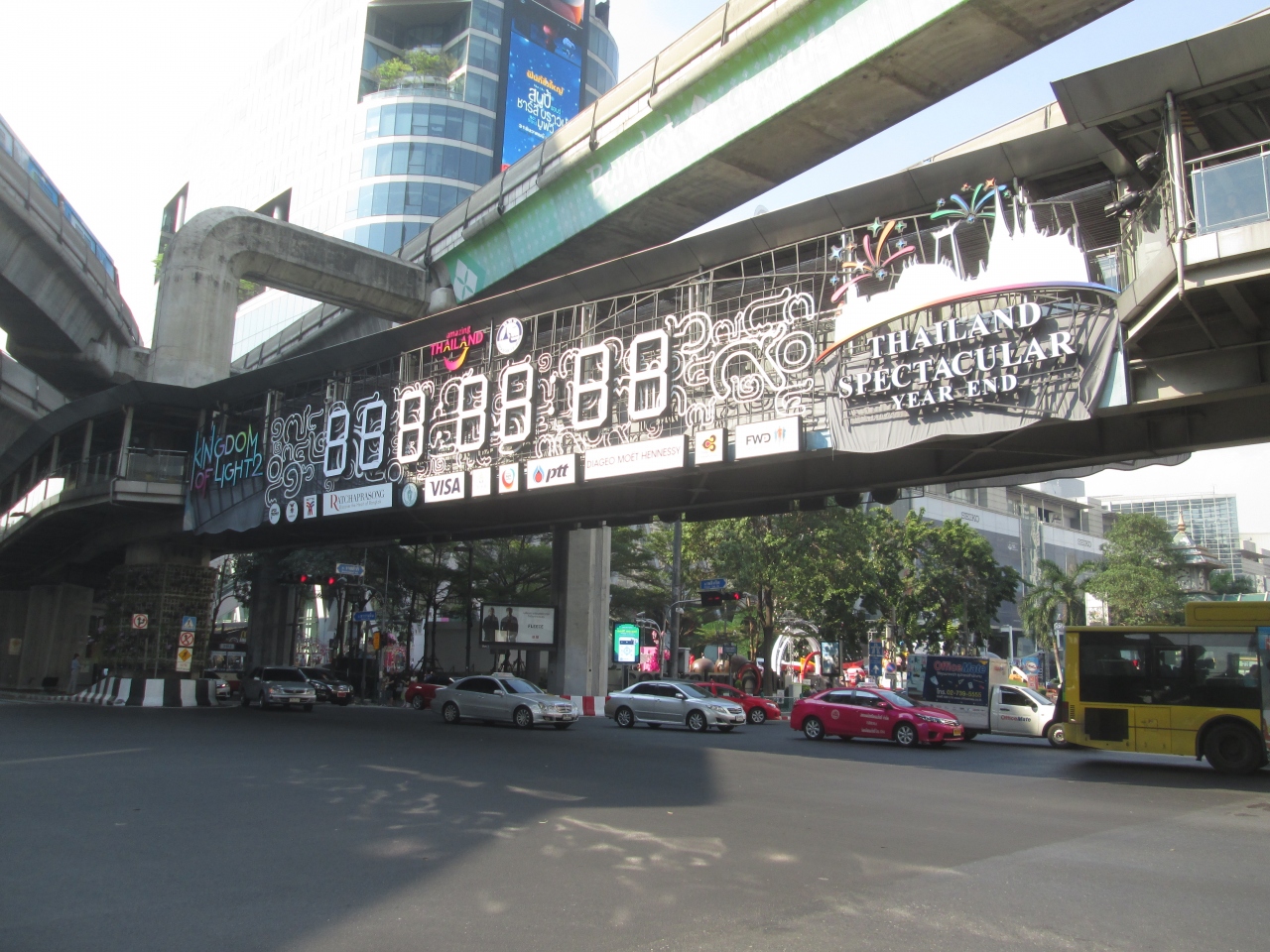 BTSチットロム駅の近くに年末・年始のカウントダウンの飾りが取り付けられました。毎年恒例の飾りですが、2016年用は時計機能が付いており、日中は稼働していませんでしたが、夕方から電飾が光り2016年までの残り時間が表示されていました。
