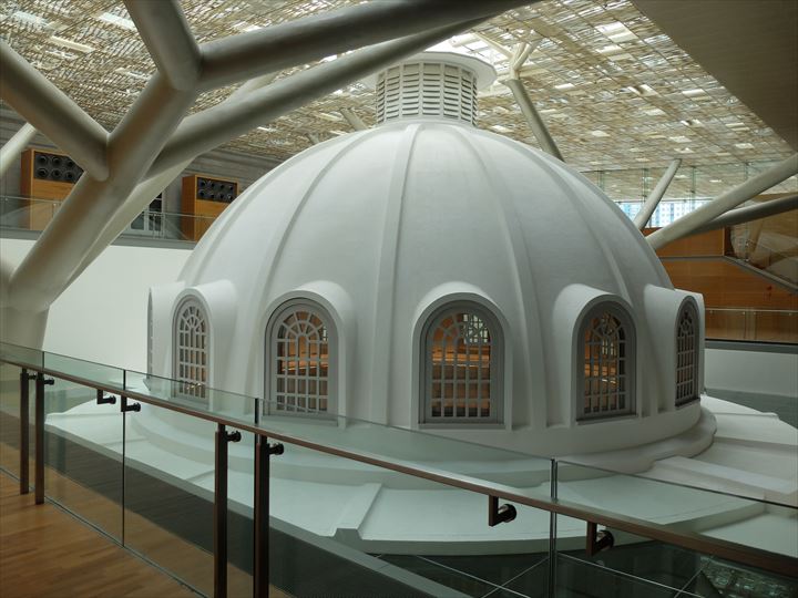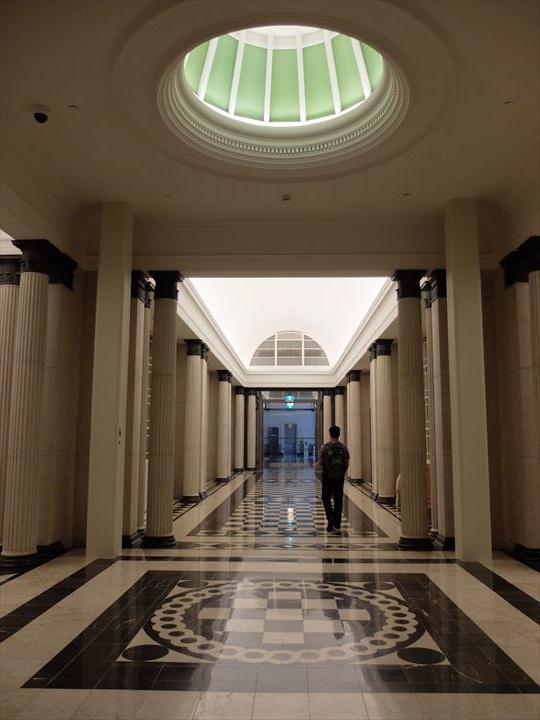 それまで隣り合う別々の建物だった旧最高裁判所と旧市庁舎の間を吹き抜けに改装したエントランス部分がまず見事。