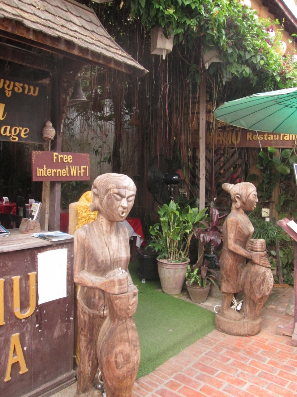 ルアンパバーン市街の散策をしている時、暑いのでどこかで休憩をしようと思っていたら丁度雰囲気のよさそうなレストランがあったので入りました、欧米人も休憩をしていました、飲み物だけを皆で注文、ビール等が安く飲めました、静かでのんびり落ち着けました。