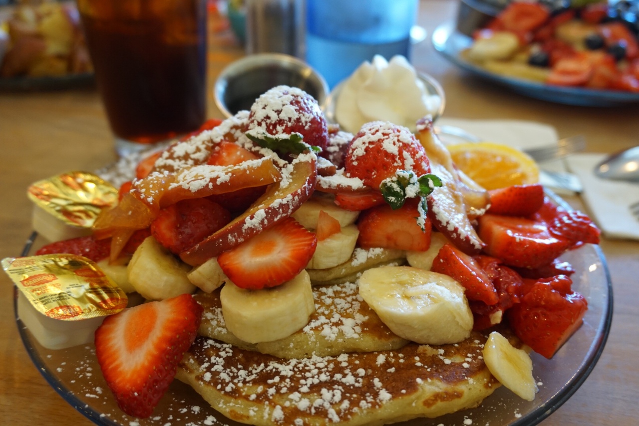 日本にも店舗がありますが、関西住みなのでハワイで初めて食べました。さすが、超有名店だけあってとにかく見た目からテンションが上がります。フルーツがごれでもか!っと乗っており、肝心のパンケーキもふわふわでとても美味しかったです。店員さんに女子三人だったらシェアした方が良いと言われましたが、迷わず一個ずつ食べました。笑