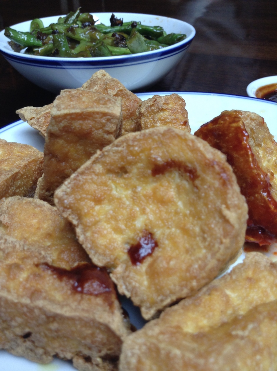 注文してから揚げてくれる臭豆腐は、カリッとしててうまい!