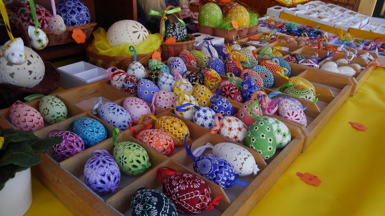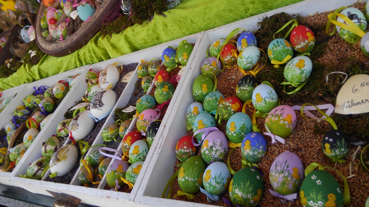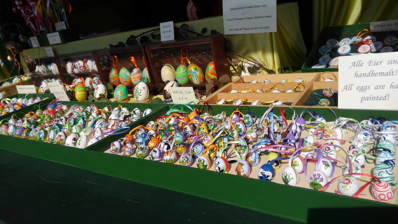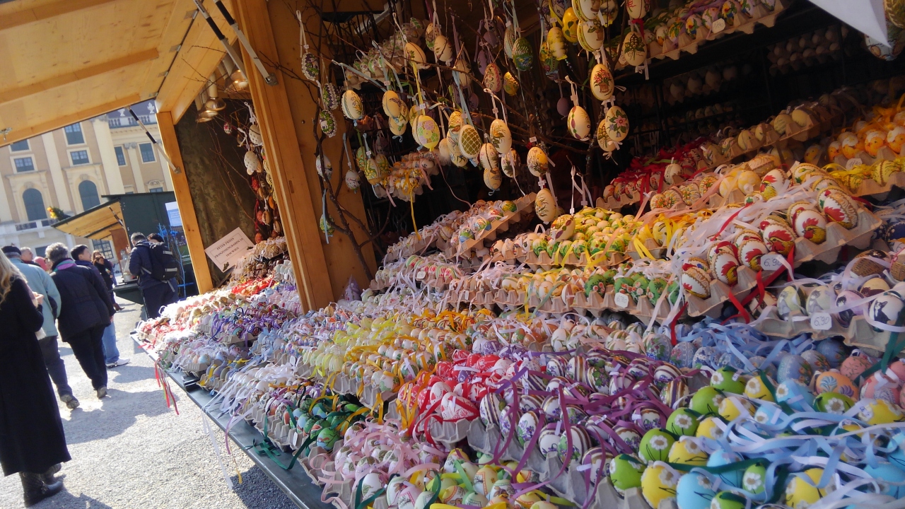 22部屋が見れるインペリアルツアーと40部屋が見れるグランドツアーがあり、朝9時過ぎに行くとすぐチケットが買えました。それぞれの部屋はハプスブルグ家の豪華絢爛な王朝時代の装飾が素晴らしいです。裏庭には噴水、彫像、はるか遠くにグロリエッテ門。宮殿正面では、ちょうどイースターマーケットが開かれていて、色とりどりの卵(鶏、ウズラ、ダチョウ)がカラフルで春らしかったです。