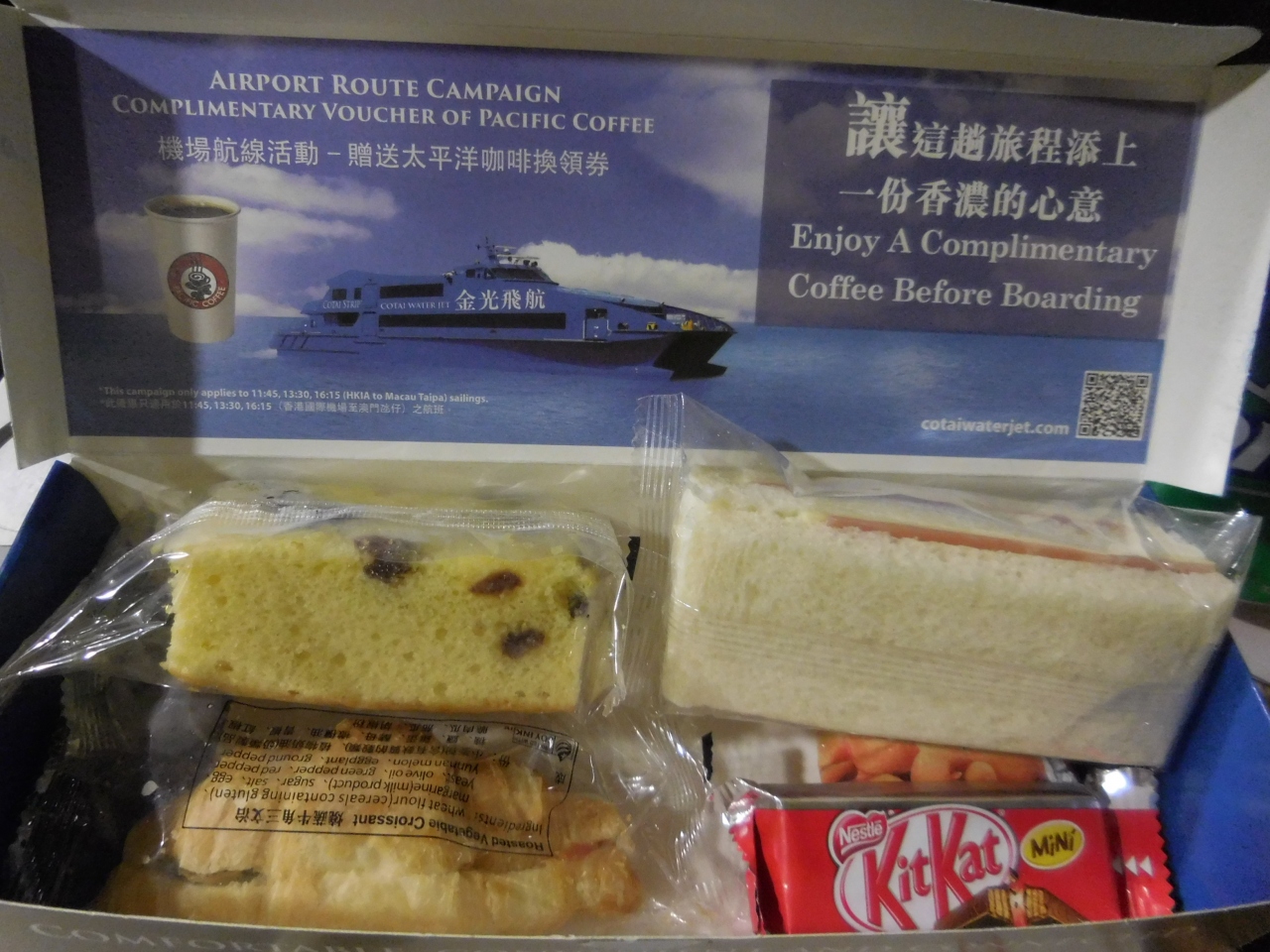 濃霧による欠航と遅延でファーストクラスしか空きがなく、席が広い以外にどんなメリットがあるのかも知らないまま乗ってみました。大行列の税関に優先レーンがあったりしないか探しましたがそれは無し。船内でドリンクと軽食サービスがありました。あとは優先下船。そのおかげで税関も一番乗りできてよかったです。