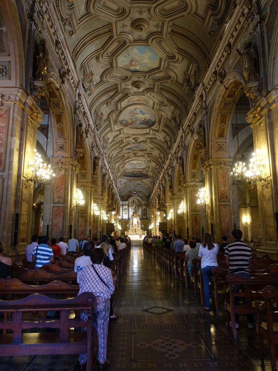 サンチアゴの中心地、アルマス広場に面して建つ、荘厳な教会です。入り口付近は工事がされているようでしたが、内部にも、自由に入ることができます。内部は多くの宗教画や、像が置かれており、天井から大きなランプが下がっています。熱心に祈りをささげている人が多かったです。