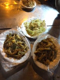 あちこちからおいしそうなニオイがしてくるので、とりあえずホタテの野菜蒸し、鶏肉のオイスターソース炒め、海老とセロリの炒め物を食べましたが、どの料理にも八角みたいな甘ったるい調味料が効いていてスパイシーで美味しかったです。