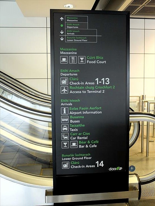 さまざまな表示がアイルランド語と英語で表記されているので、ちょっと戸惑う人がいるかも。
