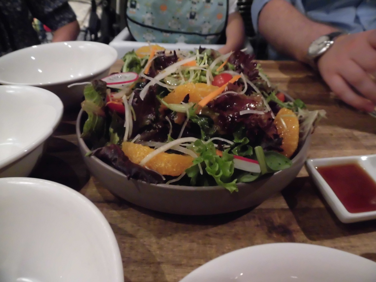 大人4名で最初サラダをシェアして、そのあと結構焼肉を食べました。ご飯が雑穀米だったのも嬉しい。キムチもおかわりして食べました。