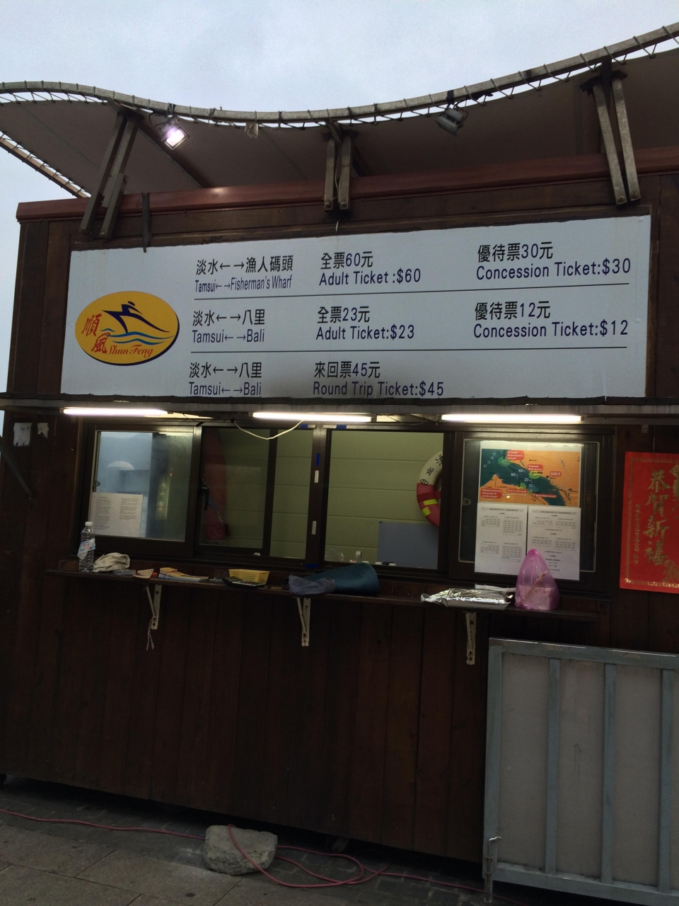 乗船券売場近くに3カ所あり、八里まで23元往復45元、魚人埠頭まで片道のみの運航で60元、魚人埠頭から八里の間も船があり、3カ所周遊で120元です