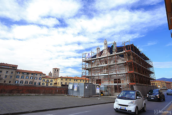 駅からピサの斜塔のあるミラコリ広場へと向かう道中、アルノ川沿いに立つ小さなゴシック様式の教会です。