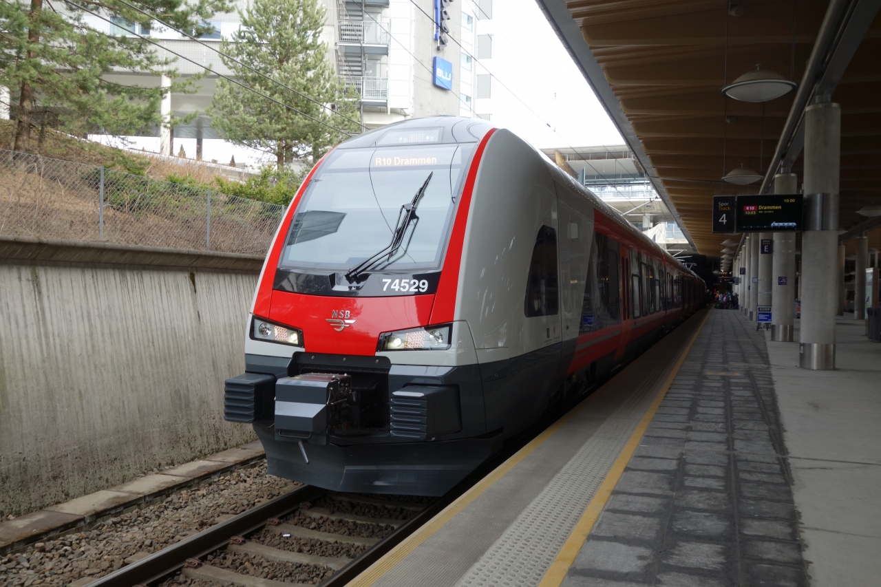 オスロ空港から都心(中央駅)まで,比較的安く,かつ快適に移動できるのが,ノルウェー鉄道の電車です.