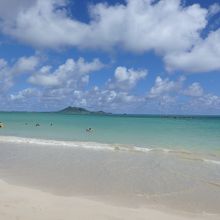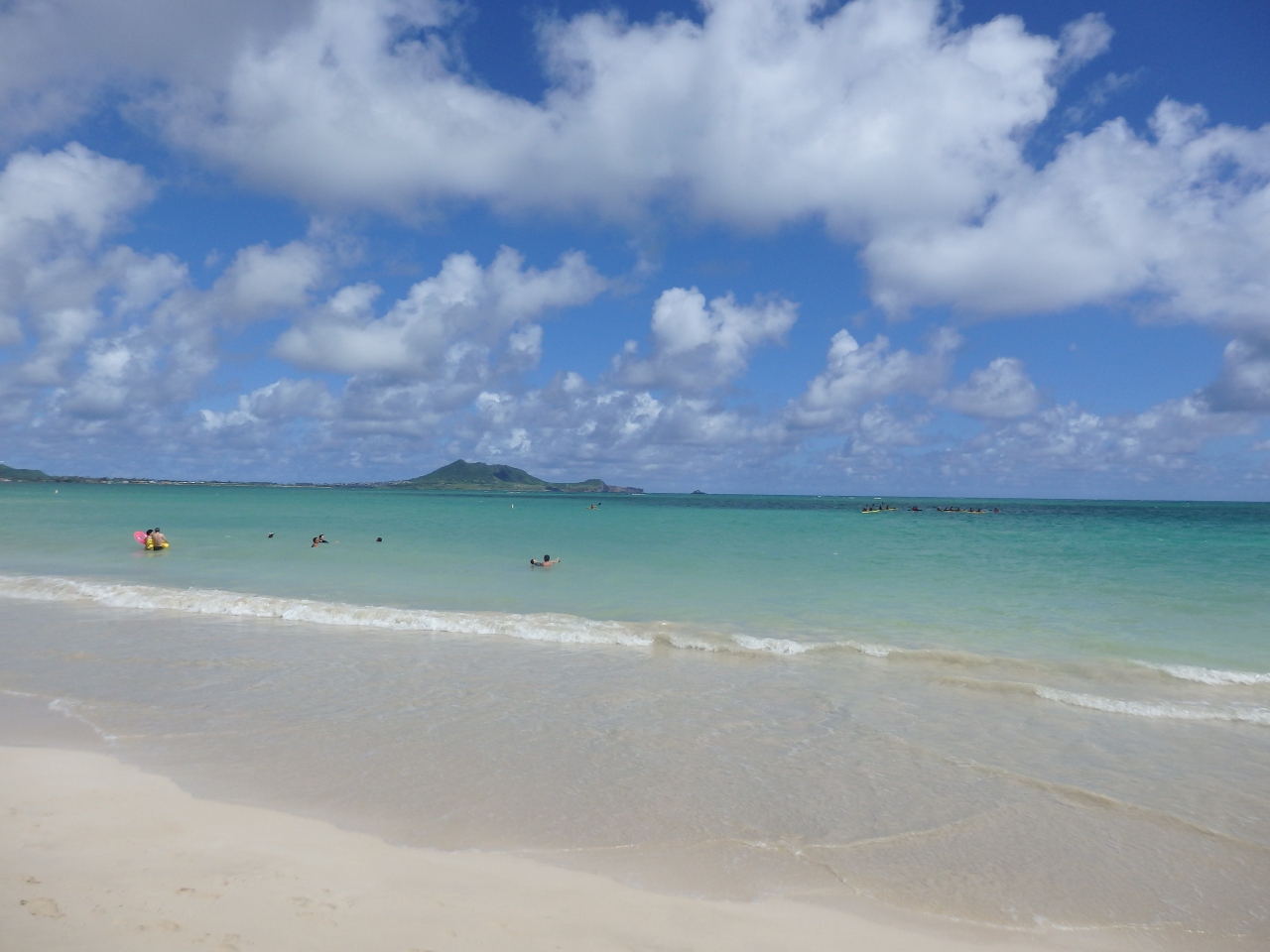 とにかく海の色がきれいです。ビーチの近くでゴザを広げて、海を見ながらまったりしました。風が強くて、荷物で押さえてないと、ゴザが飛んでしまいそうでした。私たちは泳ぎませんでしたが、風が強いから、海から出たら少し寒いかも?タウンもブラブラするのが楽しいです。