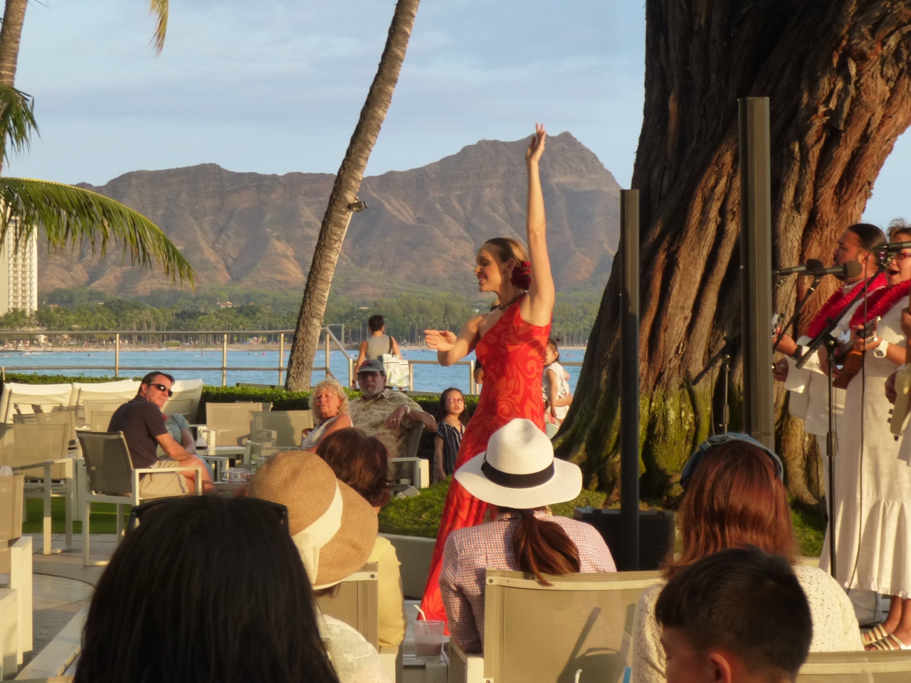 ハワイに来ると一晩はここで夕食をしている。元ミスハワイがフラダンスを見せてくれるので有名だが、さすがにお年で出演日も限られてきたみたい。でも他の人でも若くてきれいだ。なんといっても夕景と映えるダイアモンドヘッド、一本の大きな木が素晴らしいシルエットを作ってくれる。料理も美味しい。マイタイを定番にして・・・。