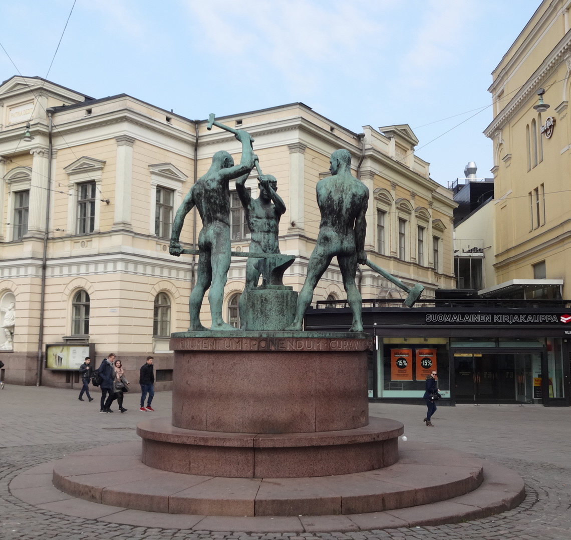 ストックマン・デパートの前が少し広場になっているのですが、そこに三人の鍛冶屋像があります。