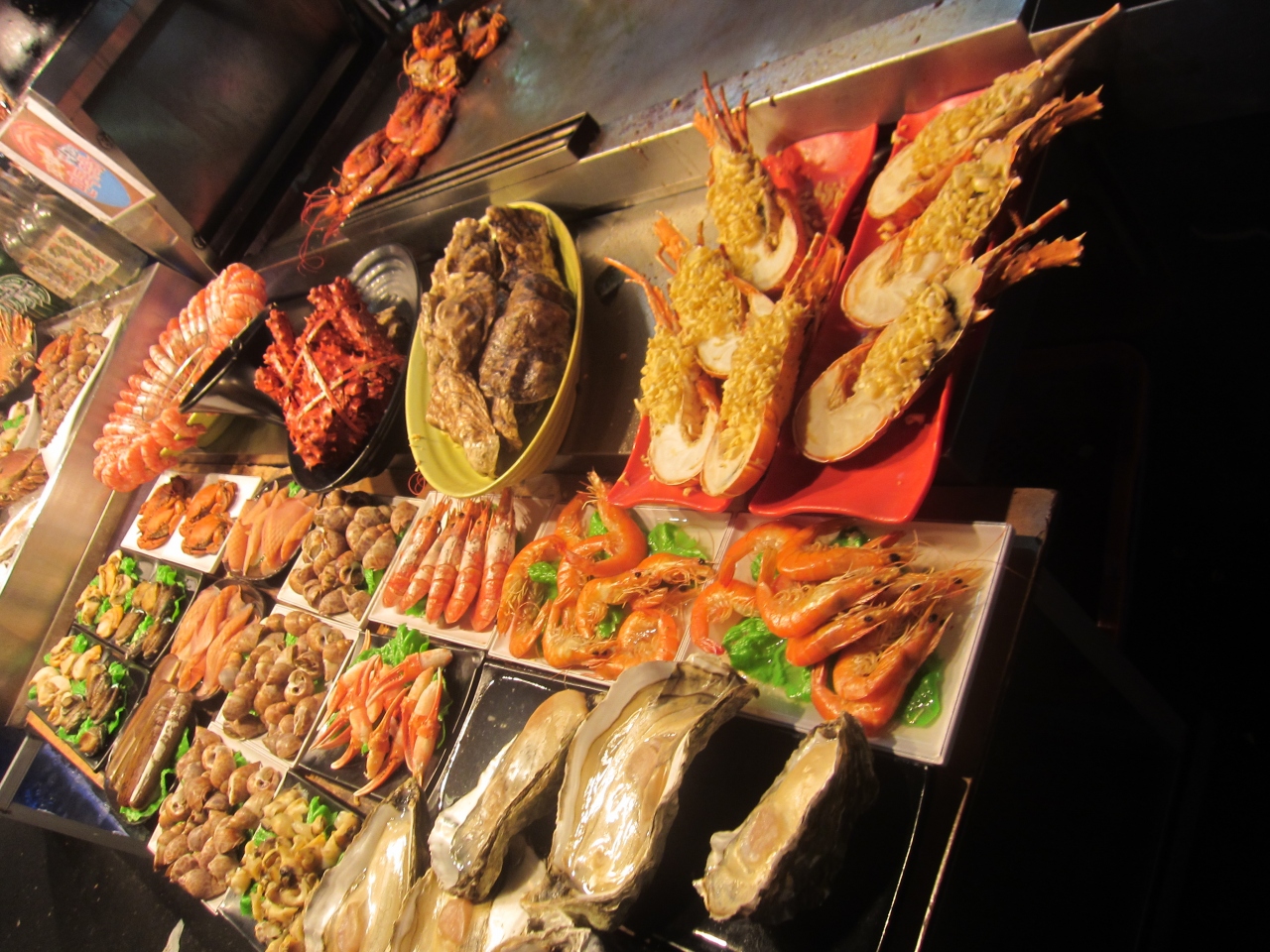 美麗島駅11番出口を出るとすぐに六合二路夜市に出ます。高雄捷運の乗換駅のため、便利な場所にあり、道路を車輛通行止めにして多くの屋台が出ています。地元の人は六合夜市よりも瑞豊夜市に行くということで、瑞豊夜市の方が混雑していて活気がありました。逆に言えば道幅も広く一本道で歩きやすいのでこちらの方が観光客向けなのかもしれません。アジアらしい熱気ある夜市を感じたい人は瑞豊夜市の方が良いかもしれません。屋台は海の街高雄らしく海鮮料理が多くありましたが、担仔麺の度小月や水餃子のお店等もありました。