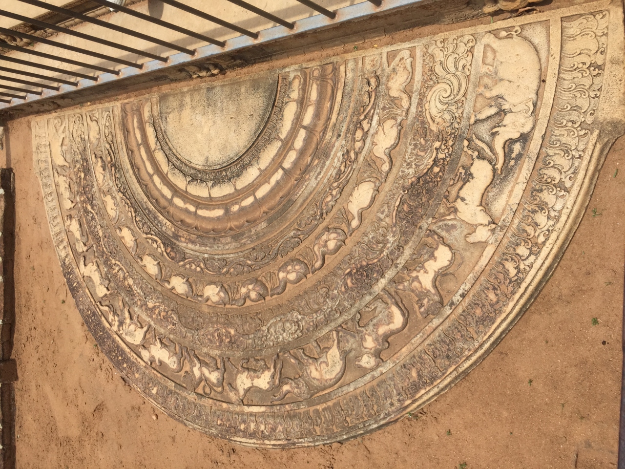 アヌラーダプラが最も歴史のある地域であることが、このムーンストーンを見ると分かるということです。ここのムーンストーンは牛がいるのですが、ヒンズー教がスリランカに広まる前に作られたものであることの証のようです。とてもキレイに残されているので一見の価値ありです。