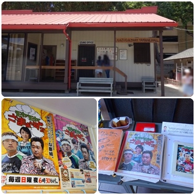 赤い屋根の建物が売店で、モヤさまのサイン入りポスターやノート等があったり、御守りもこちらで購入できます。
