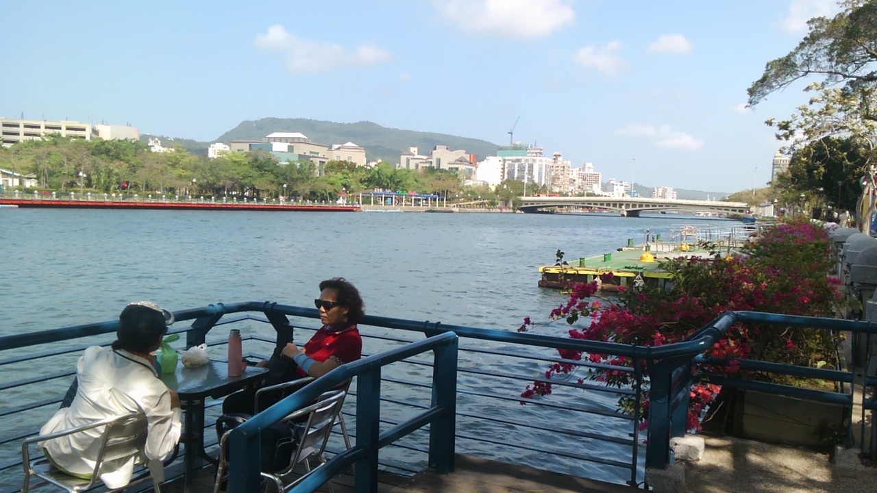 アンバサダーホテルの前の川岸には、カフェもあり、