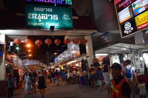 ナイトバザールの通り沿いにある、アヌサーン市場のナイトマーケット
