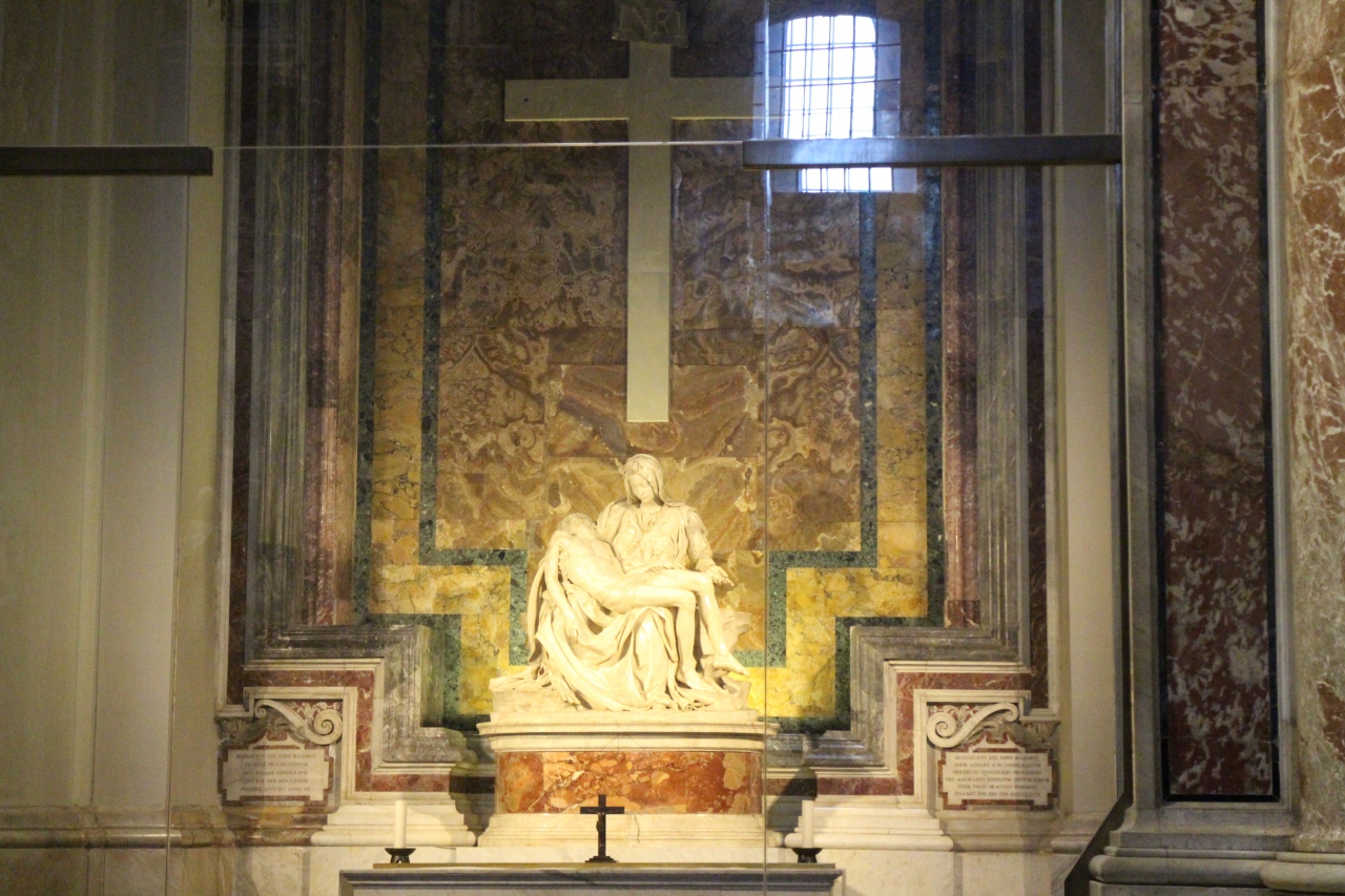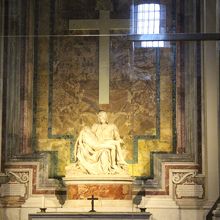 サン・ピエトロ大聖堂内 入ってすぐ右手に行くとミケランジェロの代表作ピエタに会うことができます