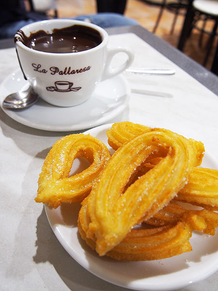 チュロスをホットチョコに付けて食べるスイーツが有名みたいで、