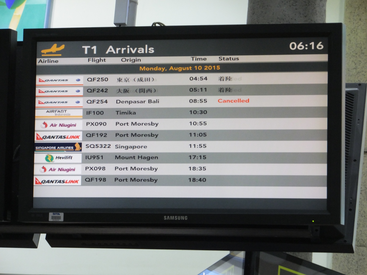 ケアンズには午前4時54分で約10分遅れで到着