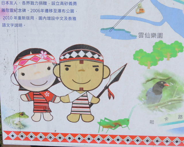 この烏来高砂義勇隊主題紀念園区は、第二次世界大戦中に日本軍として戦地に赴き戦死した高砂族の兵士を慰霊したもので、日本語の説明文などもありました。