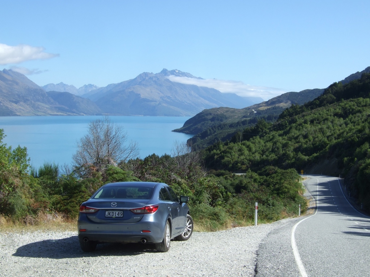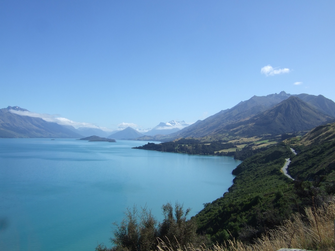 グレノーキー(グレノーチー;Glenorchy)は、クイーンズタウンの北西の小さな村で、映画『ロード・オブ・ザ・リング』のロケ地。そこに至るGlenorchy-Queenstown Roadは、ワカティプ湖沿いの景勝道路(片道約45km)で、素晴らしい景色を楽しめた。
