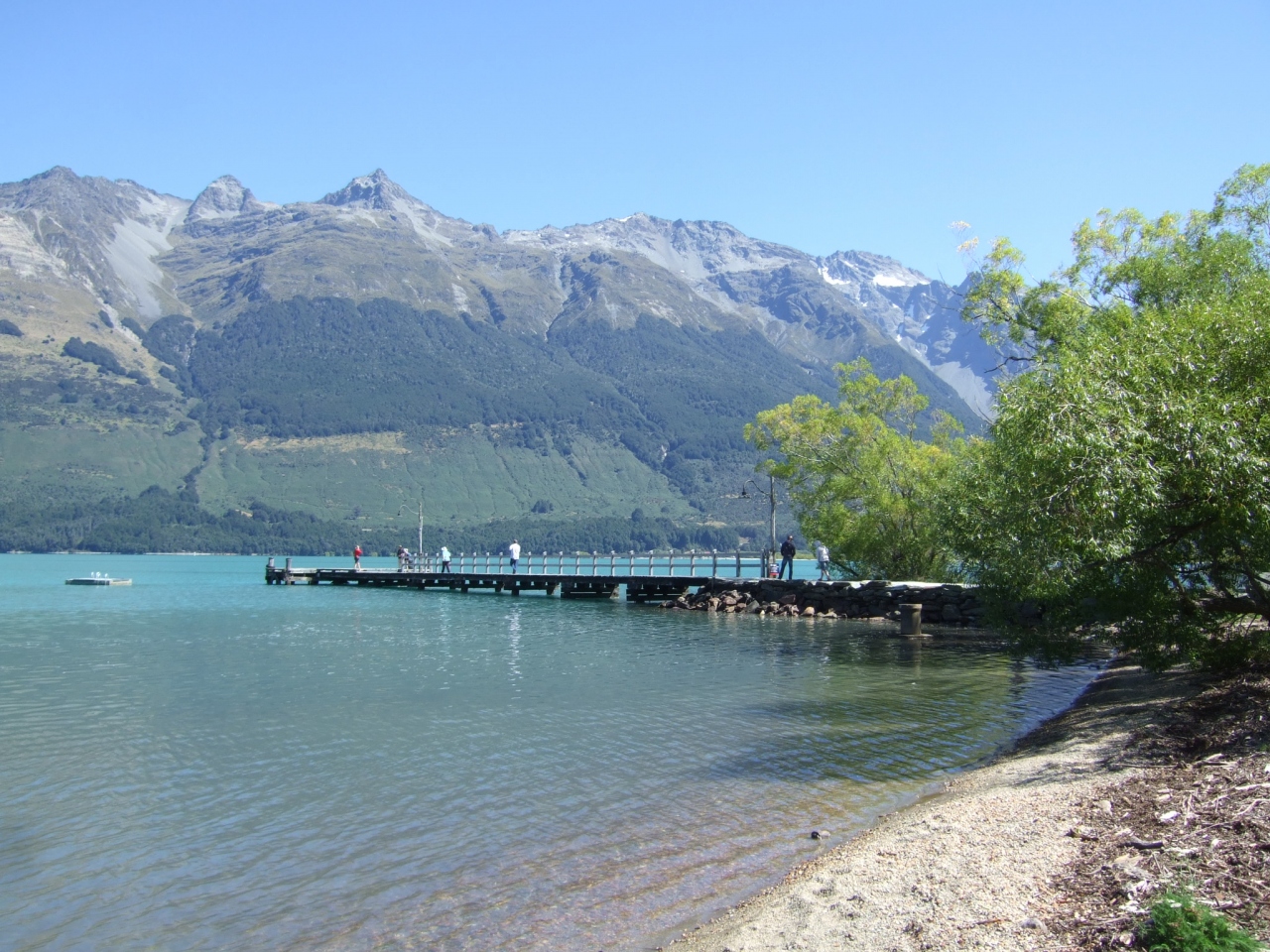 終点のグレノーキー村でも、雰囲気の良いカフェ(Glenorchy Cafe)あり、のんびりできる。村の桟橋からは、360°の絶景。