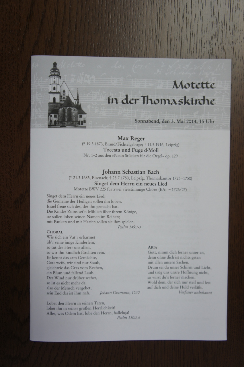 - 2ユーロのプログムラム代とお布施でトーマス教会少年合唱団によるモテット・カンタータ公演が聞けます。