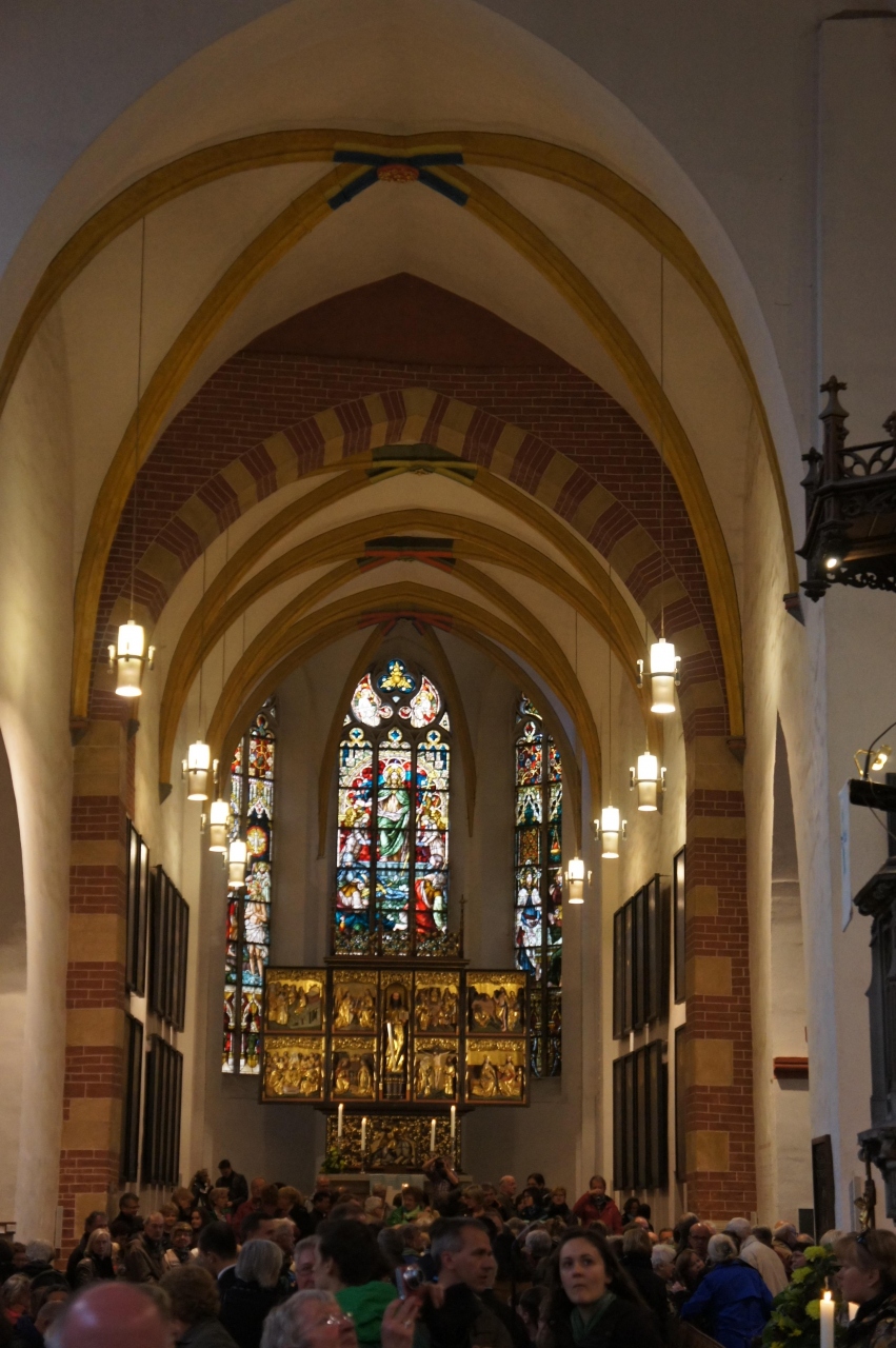 バッハが1723年から死去するまで音楽監督(トーマスカントル)を務めたルター派の教会です。教会内部にはバッハのお墓や、メンデルスゾーンやバッハのステンドグラスがあります。トーマス教会少年合唱団によるモテット・カンタータ公演(礼拝形式)が毎週金曜18:00からと 土曜15:00からあります。オルガン曲、牧師さんによる説教、バッハのモテットの順番でした。少年合唱団のレベルは大変高く、ウーィンよりもかなりうまいと思いました。小編成のオーケストラが伴奏しますがライプチヒゲバントハウス管弦楽団の方が演奏されており、これもかなりレベルが高い演奏です。オルガンは少し間抜けな音がします。牧師さんの説教もドイツが解らないせいもありますが、荘厳さに欠けるものでした。演奏のスケジュールや曲目はhttps://www.thomaskirche.org/r-events.htmlで確認できます。人気が高く早くいかないと満員になります。私が行ったときは15分前で2階席の下で音響が悪い席しかありませんでした。隣にはバッハ博物館があります(私は行っていませんが)。