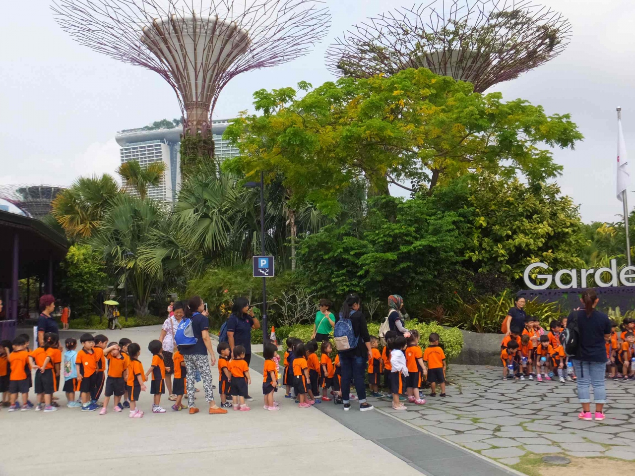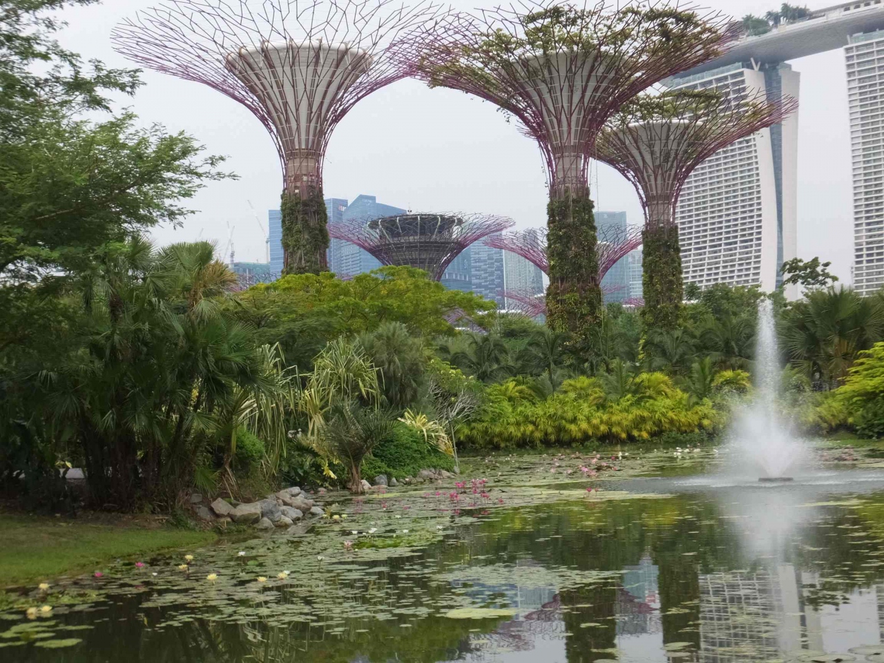 いままで見たこともない18本の巨大ツリーに圧倒されましたが、園内のマレー庭園、インド庭園、中国庭園などもすばらしく心が癒されました。朝のうちは人も少なくて静かにすごせたのですが、午後からは団体さんや幼稚園児たちがいっぱいでとてもにぎやかになりました。隣に有名なマリーナベイサンズも見えてロケーションも最高。
