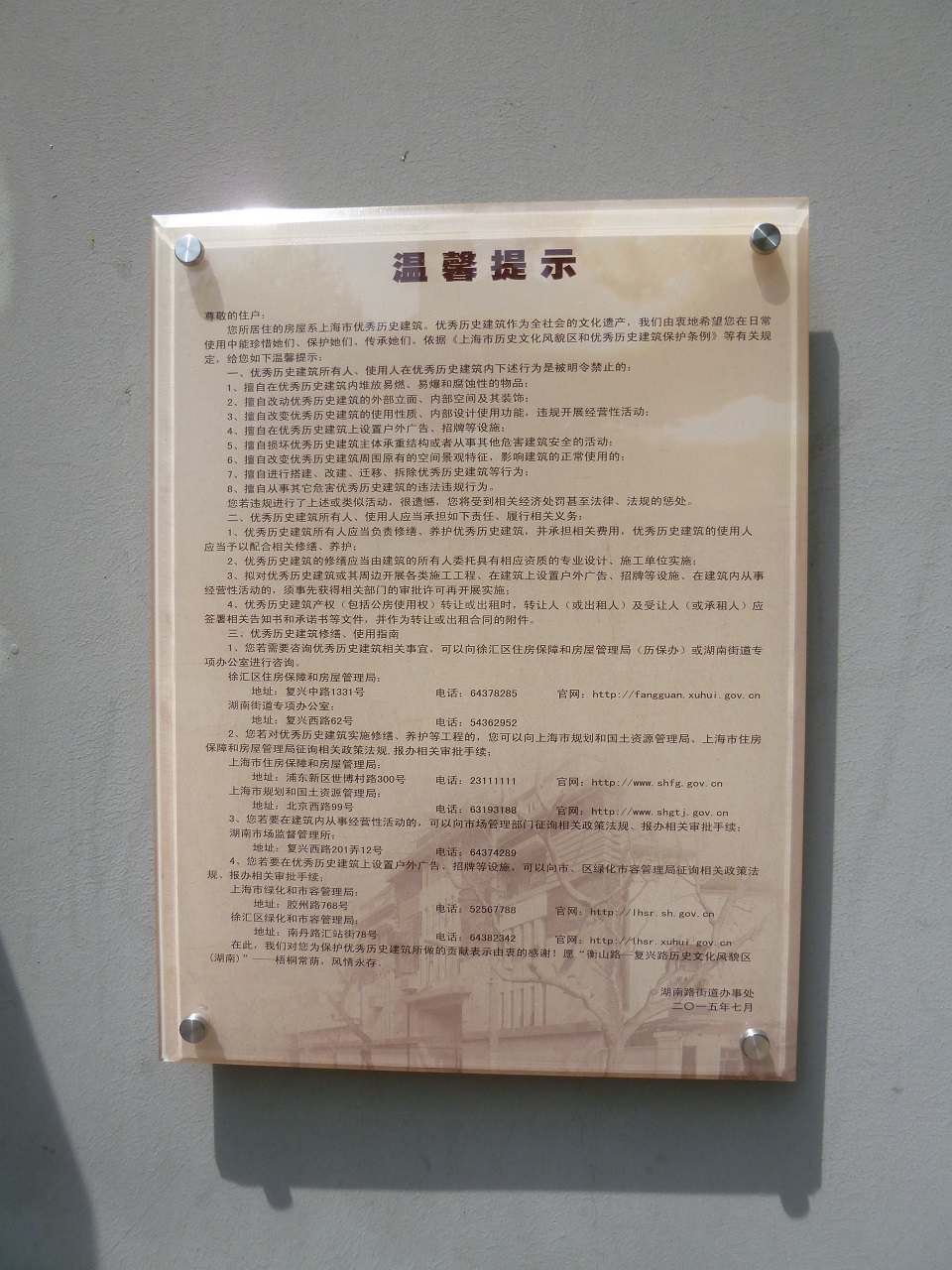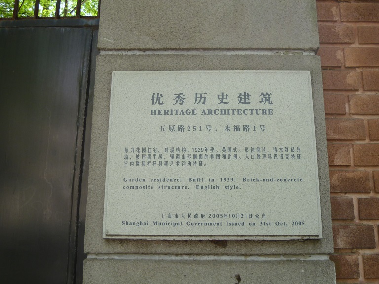 地下鉄常熟路の駅を降り、常熟路から西に延びていく道が五原路です。途中烏魯木斉中路を横切って武康まで続いており、いくつかの上海市優秀歴史建築が残ります。途中251号のイギリス様式の住宅とその向かいにある、254号の共同住宅は見ごたえがあります。