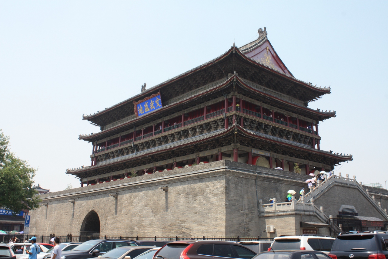 明代の14世紀後半に建造されたもので、世界遺産かと思ったが、西安の世界遺産は唐代のシルクロードとしてのものなので、登録はされていないようだ。回民街の入口にあたる部分なので、夜は特に混雑している。鐘楼と異なりライトアップはされていなかった。