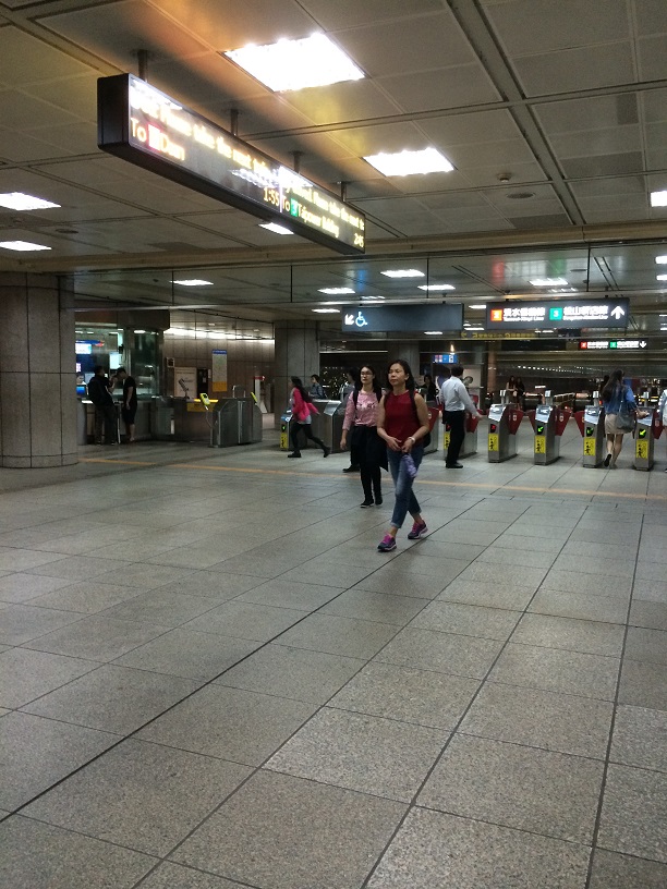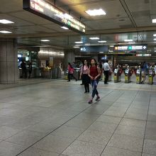 台北市の地下鉄MRTの2号線淡水信義線(赤)と3号線松山新店線(緑)が通っている駅です。