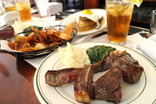 とにかく、クチコミで評判の『ウルフ・ギャング』に行って来ました!エイジング・ビーフなるモノを1度は食べてみたかったのです。いつも長い行列ができるそうですが、この時はラッキーにも前に1組待たれているのみ。待ち時間10分程で入れました。ニューヨーク・サーロイン・ステーキ(マッシュポテト、クリーム・スピナッチ、チーズケーキ付き)と、ミニロコモコをオーダー。それぞれをシェアして食べたのですが、評判どおりステーキがおいしい!お肉にそのものに味があって、かみしめる程に肉汁が。ちなみに、ロコモコはいたって普通...グレービーソースが、さすがステーキハウスのだけあって美味しかったです。
