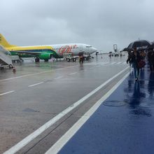 小さい空港で何もありません。到着してタラップを降り滑走路を歩いてターミナルビルに入ります。最短距離で荷物受け取りに行けますので、便利といえば便利。外にはタクシー、バス乗り場などあり、ここからホテルのお迎えバスでホテルに行きました。