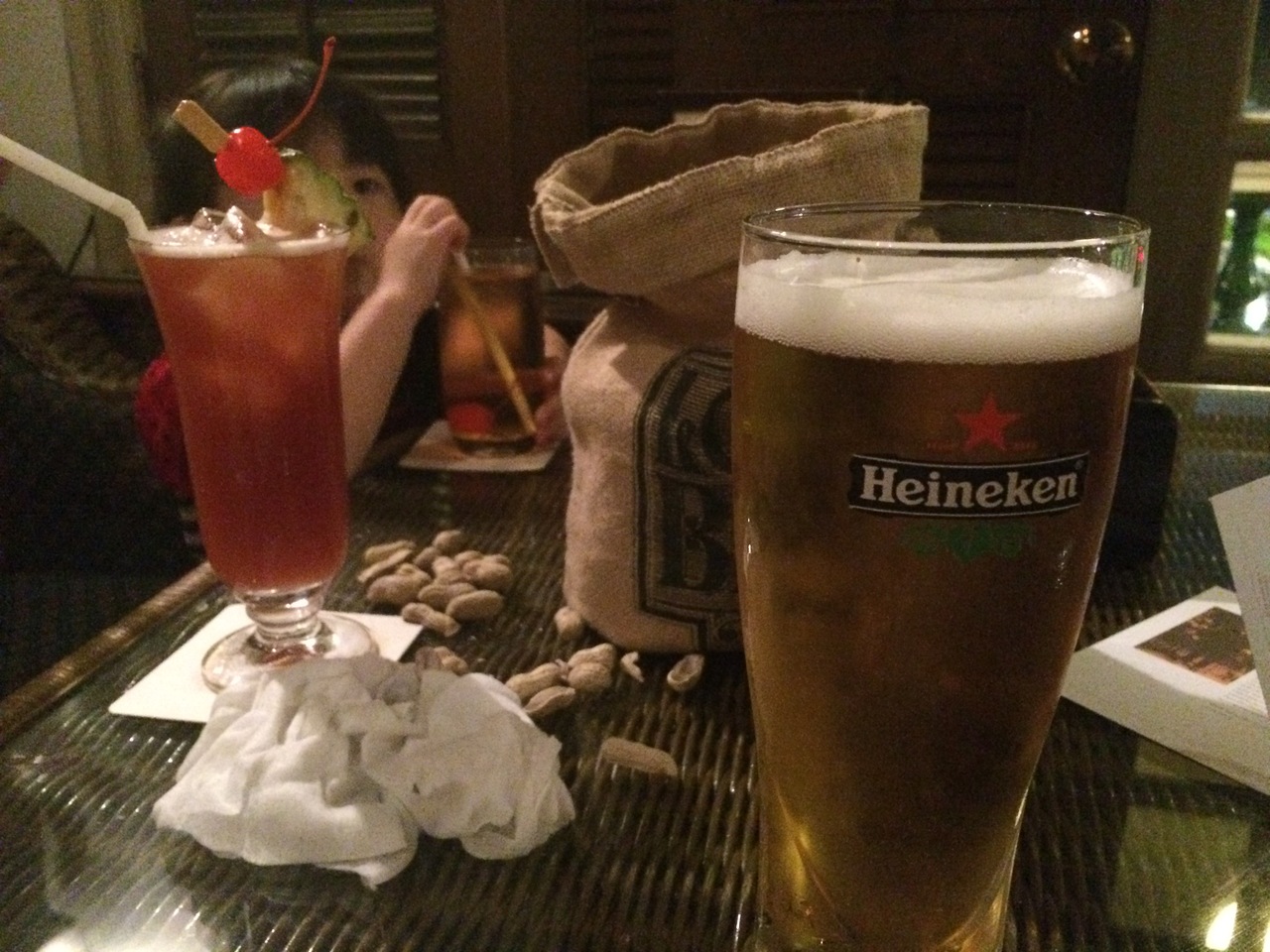 テーブルの上に無料のピーナッツが置いてあり、殻を床に捨てるという斬新過ぎるごみの捨て方。なんだか楽しかったです。